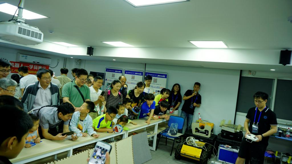 The exhibition is demonstrated by research teams of the two laboratories. As a hot spot of the 2018 Science Week of USTC, the fantastic shows of robots feast visitors of all ages on up-to-date achievements of automation science and technology.