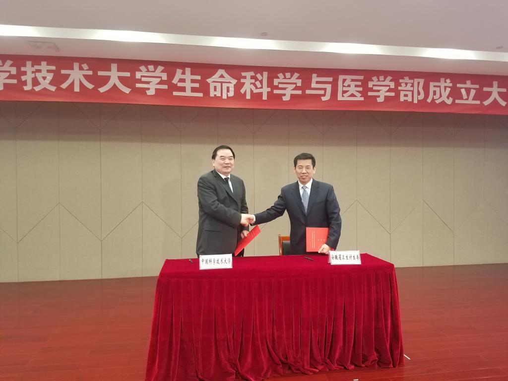 BAO Xinhe,Principal of USTC and YU Dezhi, Director of Anhui provincial Health and Family Planning Commission signed the agreement