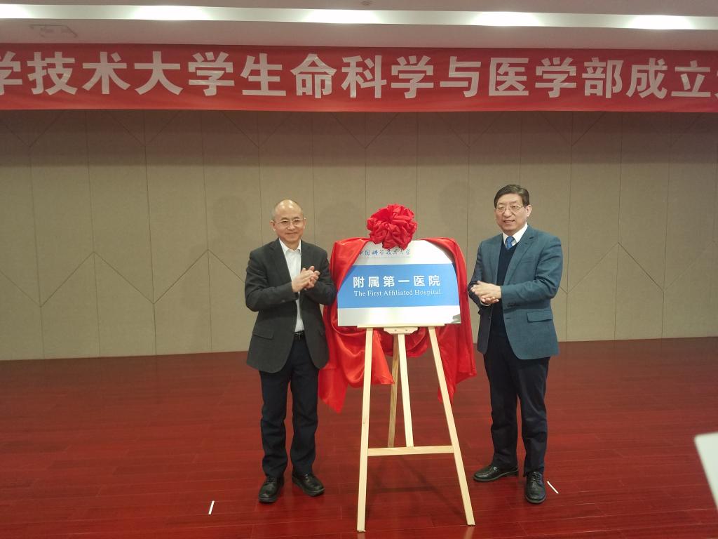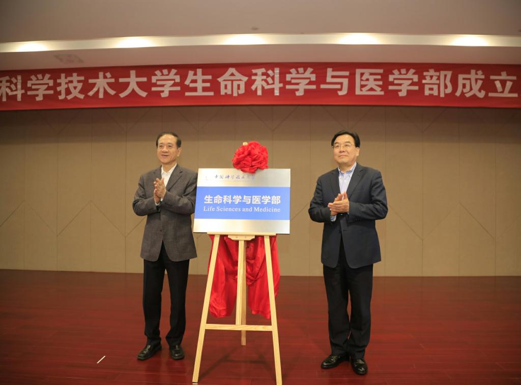 HAN Qide, Vice chairman of the CPPCC National Committee and director of the Advisory Committee and XIN Changxing, Deputy Secretary of the CPC Anhui provincial committee, unveiled the nameplate of the School of Life Sciences and Medicine