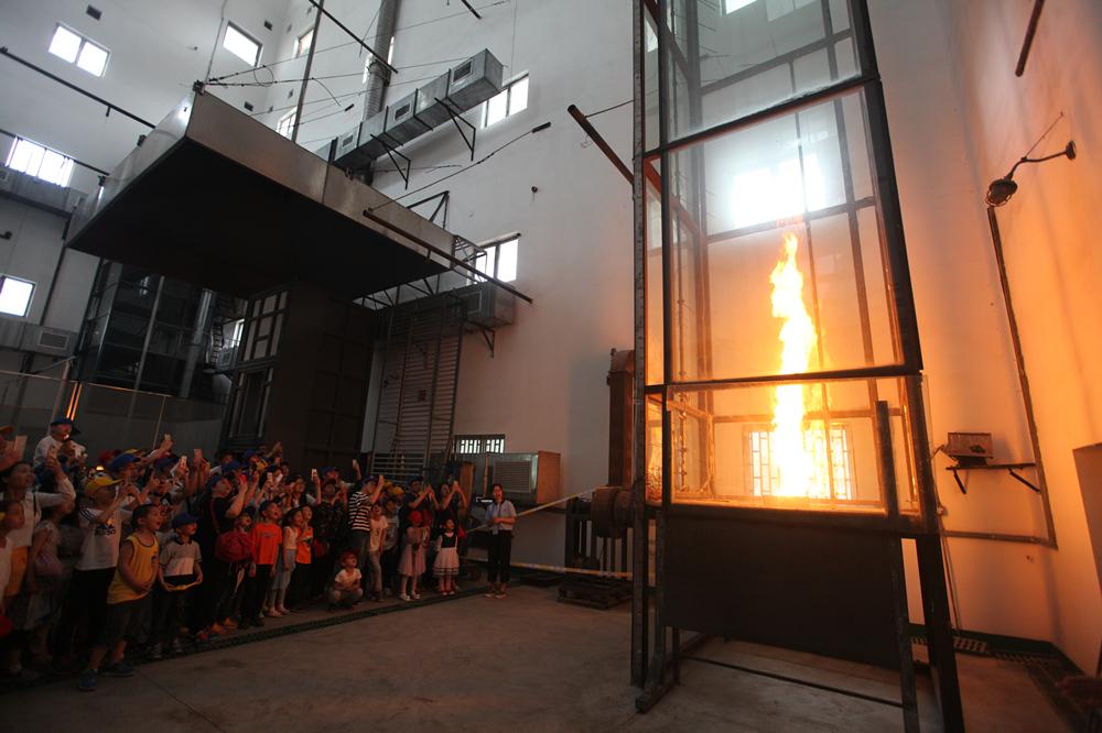For years, the national key fire science lab has been crowded with visitors and this year is no exception. Upon arrival, they moved directly to the fire tornado project, and took photos and videos with cellphones before the experiment starts. A hush fell, and operators started the demonstration: fire started to burn in the experiment tower, then the flame spiralled up in an ever more violent fashion as it snaked skyward. The swirling flames not only lightened up eyes, but sparked scientific curiosity within young minds.